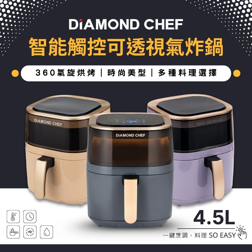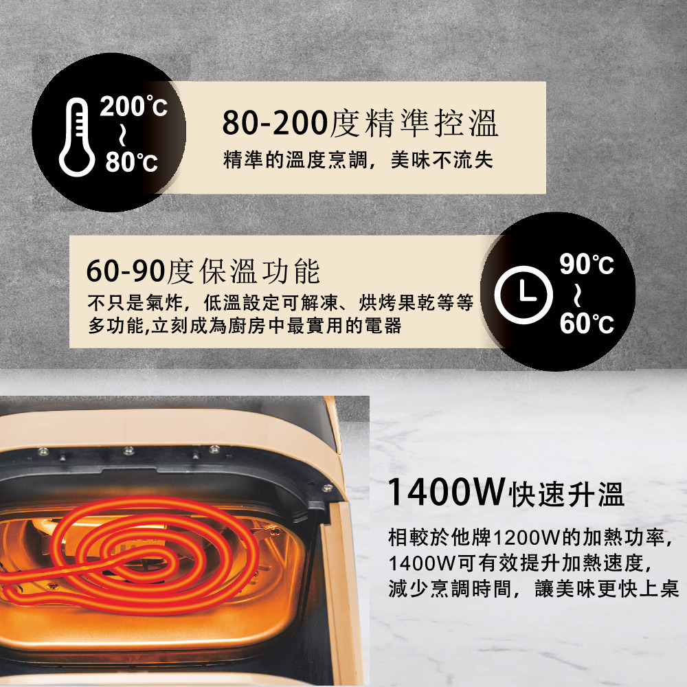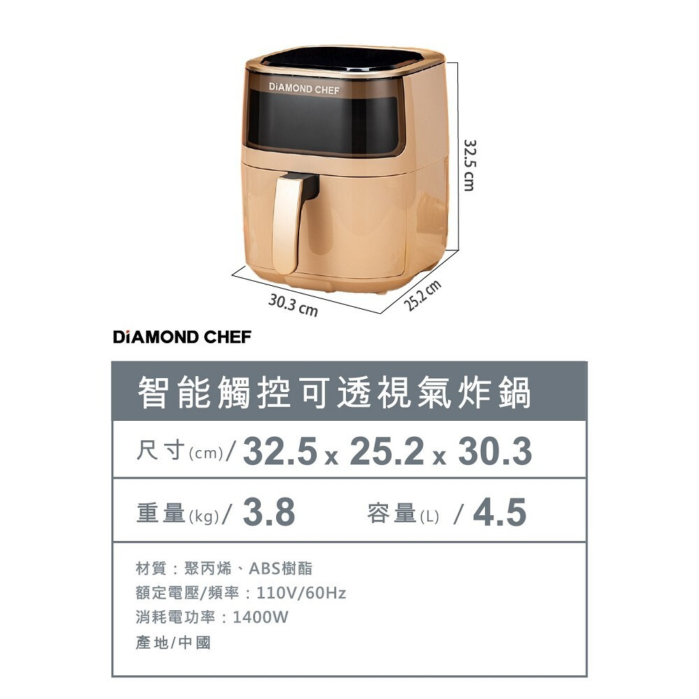 智能觸控可透視氣炸鍋4.5L-奶茶色(附濾油盤)