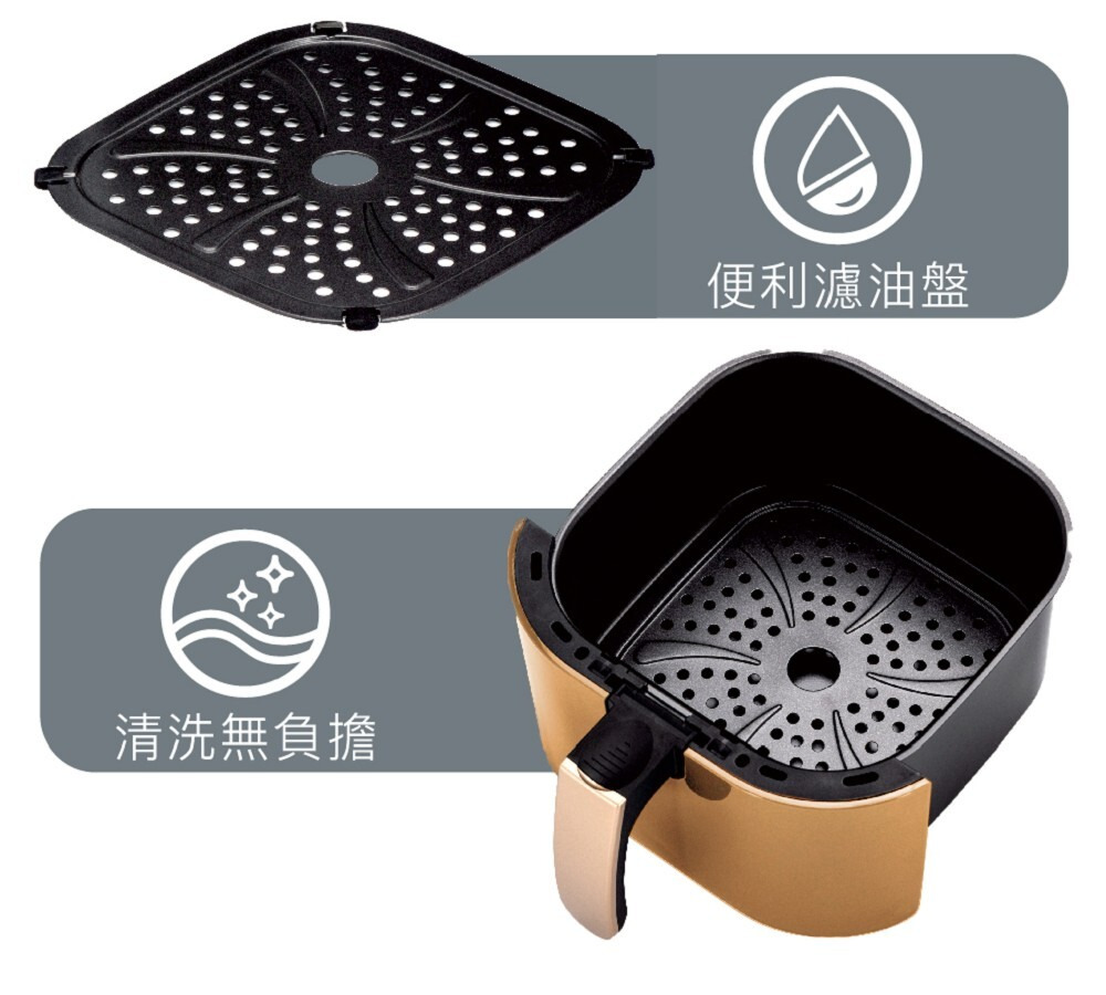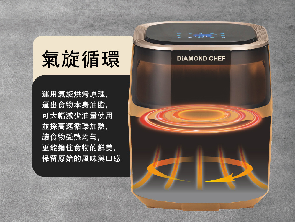 運用氣旋烘烤原理,逼出食物本身油脂,可大幅減少油量使用