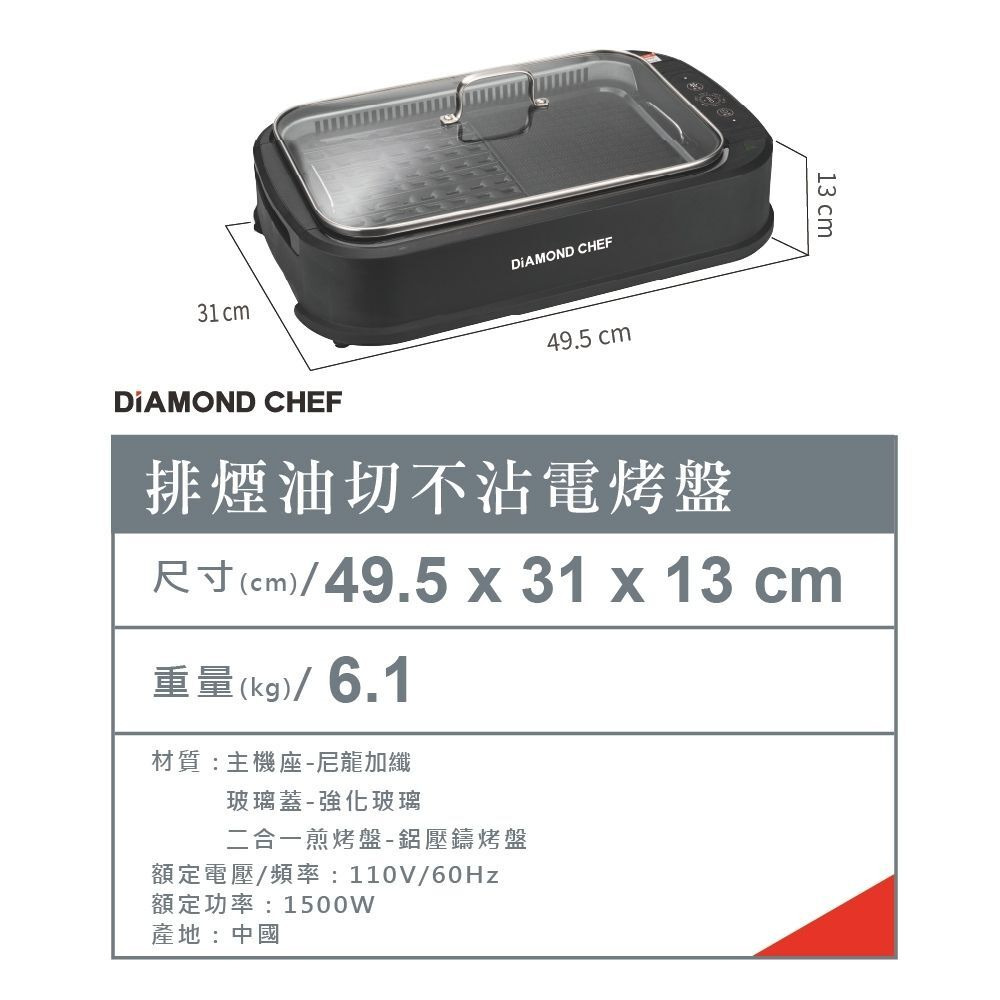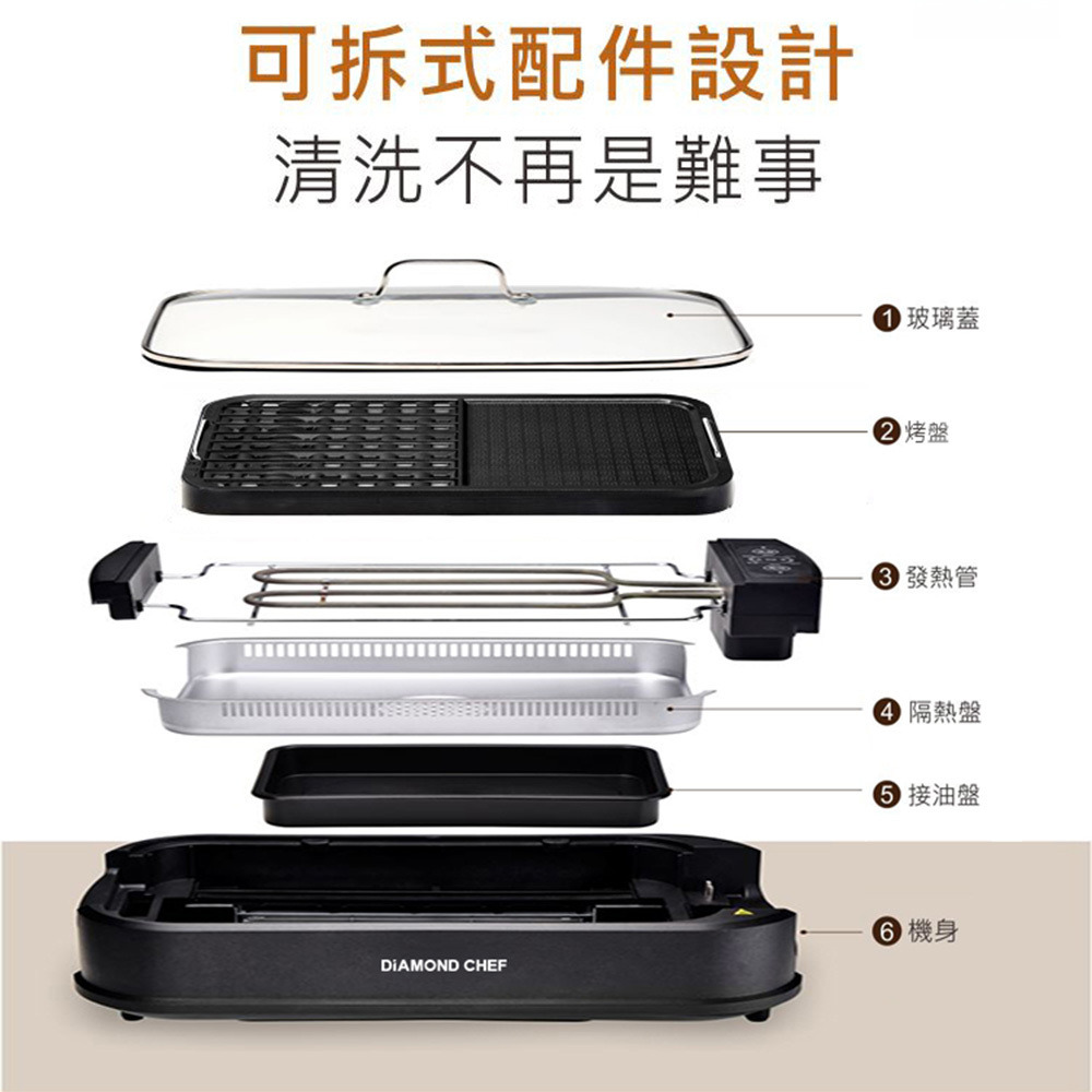 主商品:DIAMOND CHEF無煙電烤盤x1(含蓋)