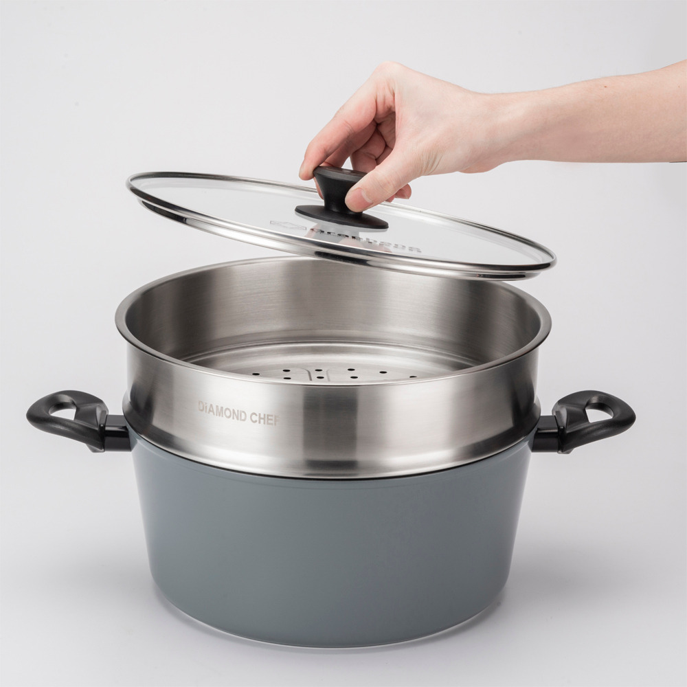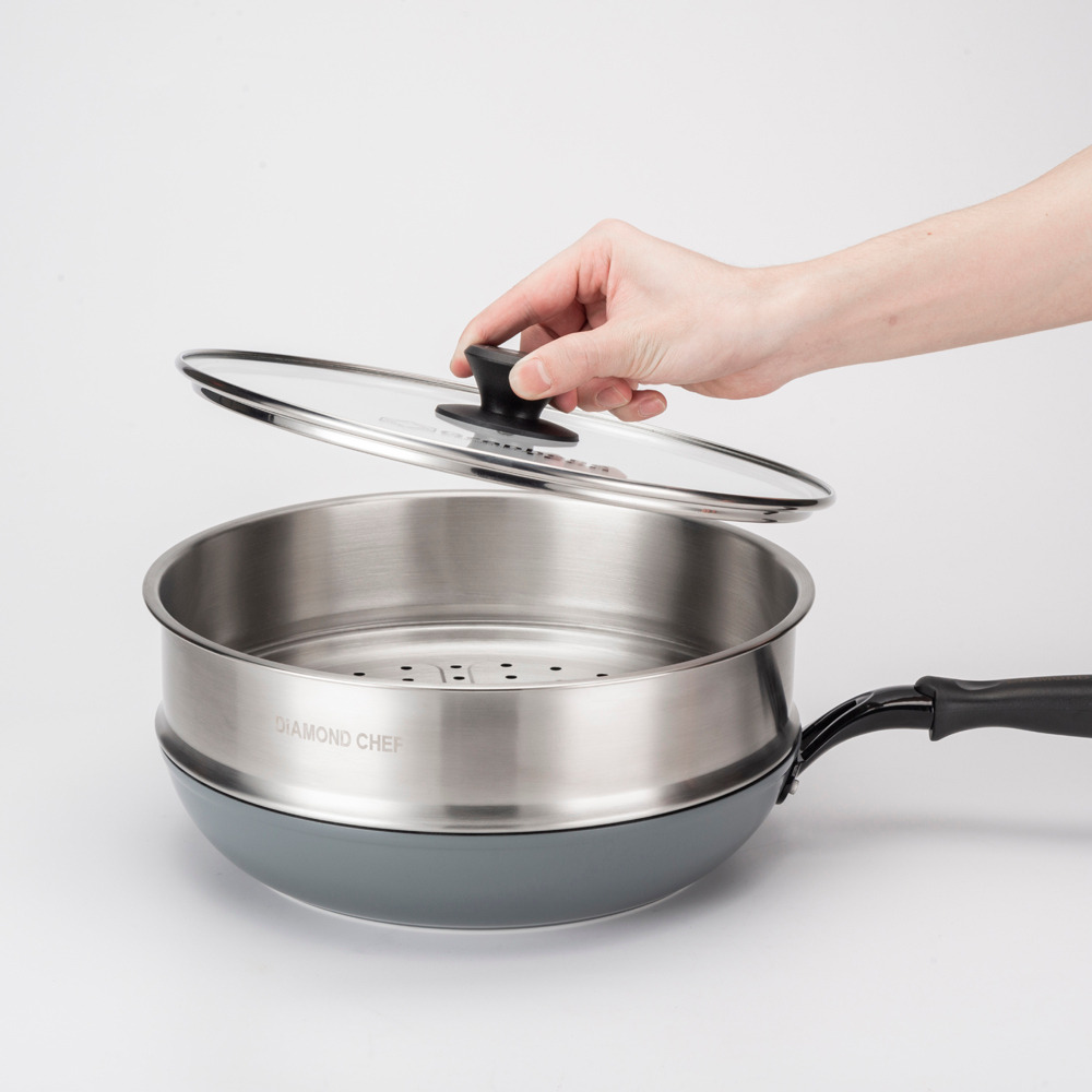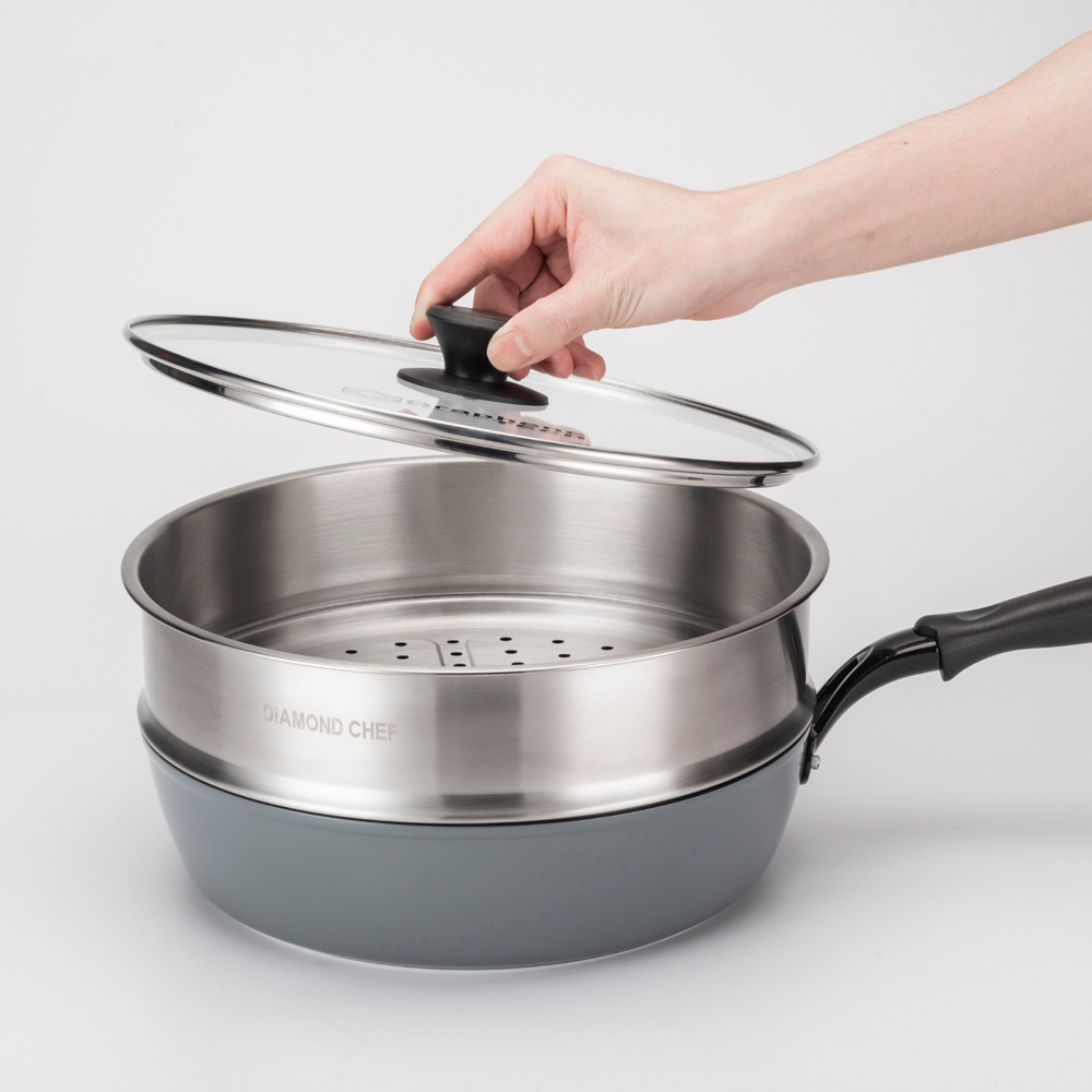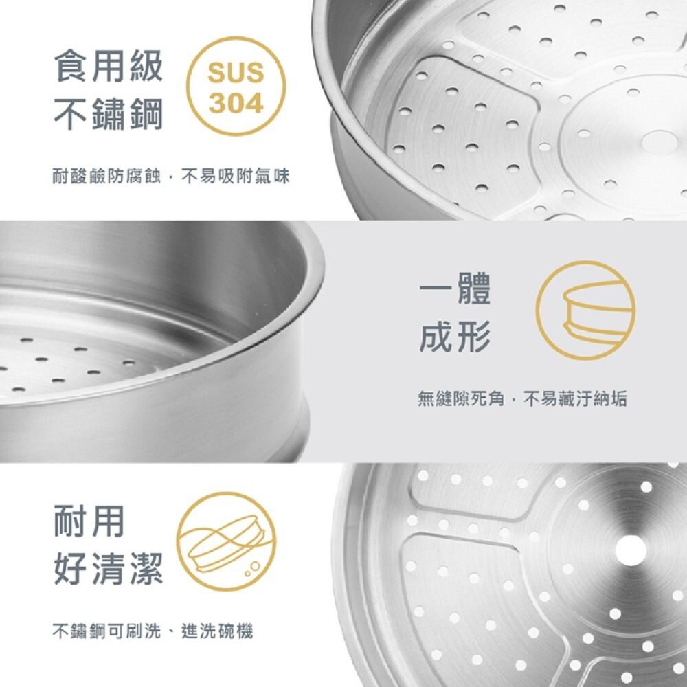 品名:DIAMOND CHEF專用不鏽鋼蒸籠(28公分) 材質:304不鏽鋼 尺寸:28 X 8 cm 顏色:銀色 淨重:360g ± 10g 產地:中國 注意事項: ● 請同一般不沾鍋清洗方式,建議使用海綿、精緻鍋具專用菜瓜布清洗,以延長鍋具使用壽命。 ● 上述尺寸為人工測量 ±5%誤差為正常範圍。